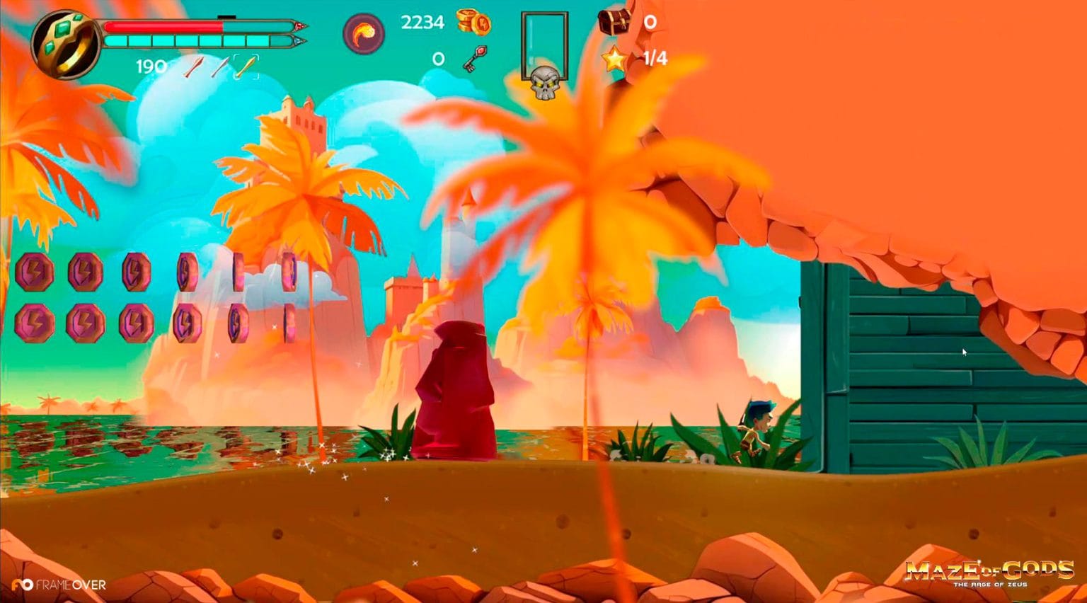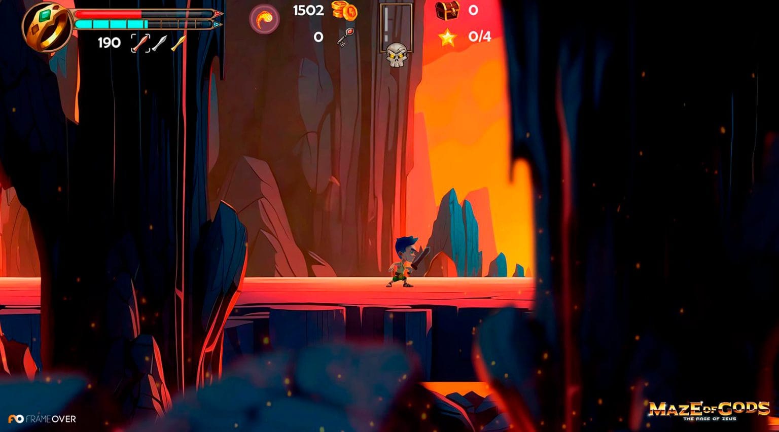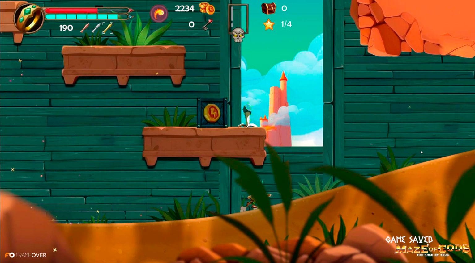 Maze of Gods: The Rage of Zeus is a 2.5D Platforming Metroidvania Adventure videogame developed by FrameOver that arranges multitude of levels, special phases and final bosses in the same experience, in which you will have to defeat all obstacles in order to become a true hero. The game has a very unique feel as it mixes certain RPG elements with tons of engaging mechanics and a meticulously handcrafted artwork.